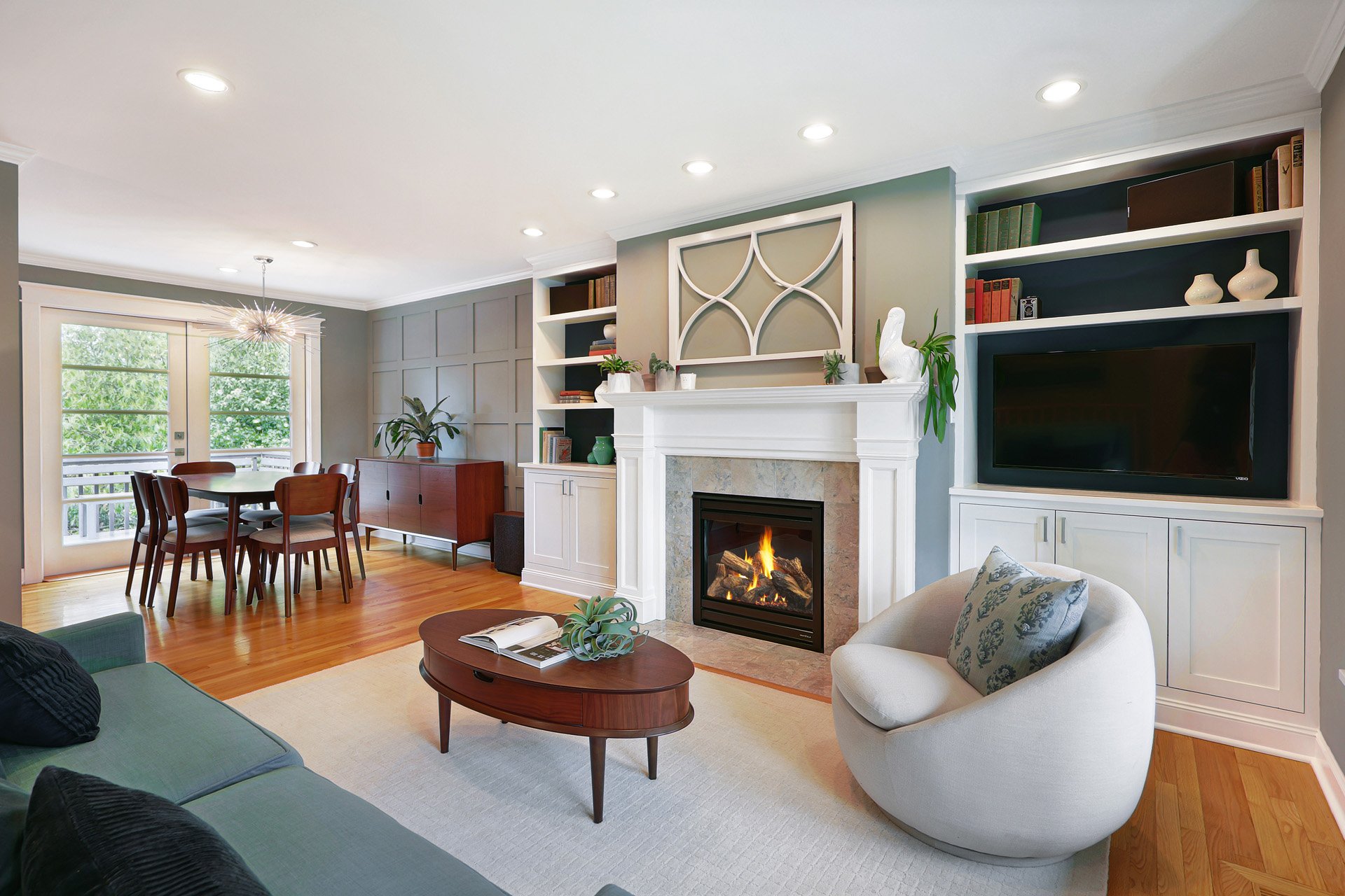 They thought of everything. This 1956 show-stopper meticulously remodeled over 18 years exemplifies true pride of ownership, exceptional craftsmanship. Enter to the living room, anchored by a gas fireplace & marble surround, flanked by built-ins with discreet media connections. The dining room bridges the large deck with gas grill connection to the expanded kitchen.