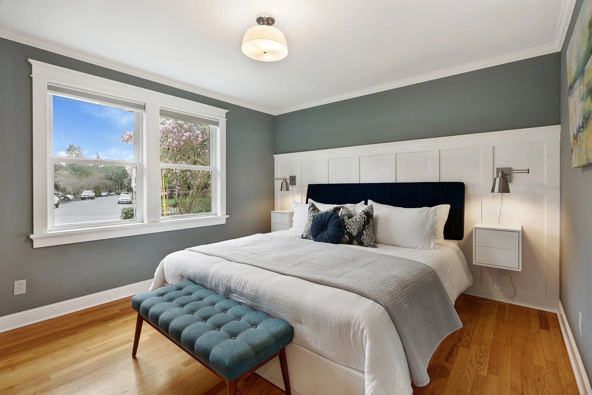 An upstairs primary suite which overlooks the quiet backyard features an en suite bath. Fresh interior paint throughout adds a crisp, move-in-ready feel to this perfect townhome alternative with no shared walls, HOA, or rental restrictions. Within the attendance area for GreatSchools' 10 out of 10 Whittier Elementary! All this, with exceptional walkability to Stumbletown, Phinney Ridge, Greenwood, and all of Ballard's neighborhood favorites right at your doorstep.