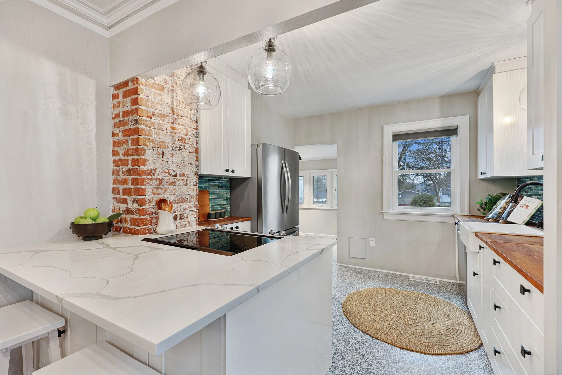 Classic 1928 charm meets impactful modern updates in this beautifully maintained home, set up off the street for added privacy and stately presence. Inside, period details pop—exposed brick, original oak hardwoods, crown molding & picture rail, and vintage glass doorknobs pair effortlessly with everyday functionality.